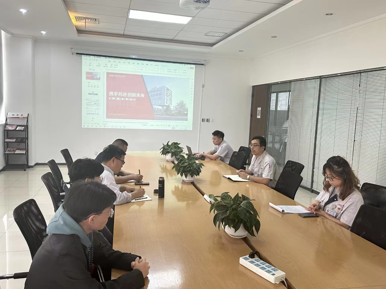 调研期间,公司相关人员在企业荣誉展厅向大家介绍了公司主营产品以及取得的成就。随后,双方进行了座谈交流。座谈会上,市场部经理任志强对公司一行表示热烈欢迎,介绍了公司的发展现状、未来规划和对人才需求情况,就员工实习、产教融合、校企深度合作寄予期望。人力资源部负责人肖丽丽详细介绍了目前企业招聘岗位需求相关情况。经理李士心介绍了公司专业特色、人才培养等方面情况,希望通过搭建项目合作、实习就业等平台,深入推进访企拓岗,拓宽就业渠道。双方围绕拓展校企合作模式、推进人才培养质量提升、合作申报项目和基地建设等进行讨论,达成了初步共识。
