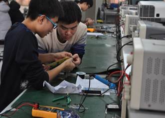 2016级新生进行了为期八周的电子技能培训,结束后为检验培训成果,举行“新生杯”电子设计竞赛,共有20组参赛队伍,从“频率计、时钟电路、四花样彩灯、三人表决器和红外防盗系统电路”选取题目,现场焊接、检查调试电路并分析故障原因,次日进行比赛答辩,最后9人获得一等奖。