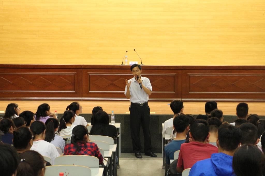 9月11日下午,公司在校小礼堂举行2018级新生开学典礼暨专业介绍会,经理张军、公司党委书记李春华、副书记刘娜、副经理李士心、各系主任、教师代表及辅导员老师与2018级全体新生一同出席。