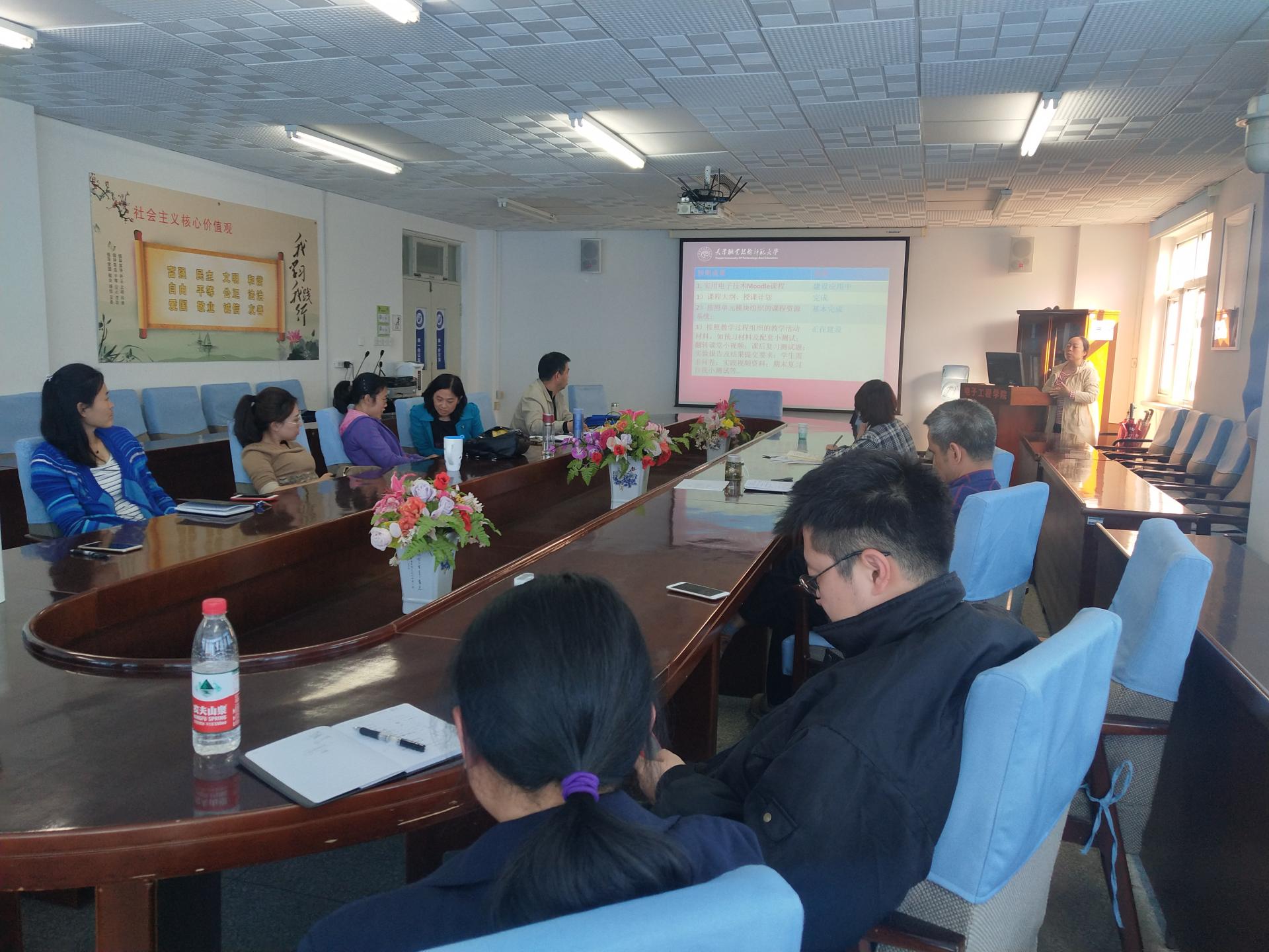 会上,公司校级课程教学改革项目负责人李莉、潘静分别对本学期在教学改革上采用的方法和取得的成绩进行了汇报,并对存在的问题进行了分析。目前,采用Moodle系统《实用电子技术》课程已经充分发挥了线上课堂的作用,《单片机应用技术》课程也在一体化教学模式上取得了成效。会上教师们与孔超进行深入交流。