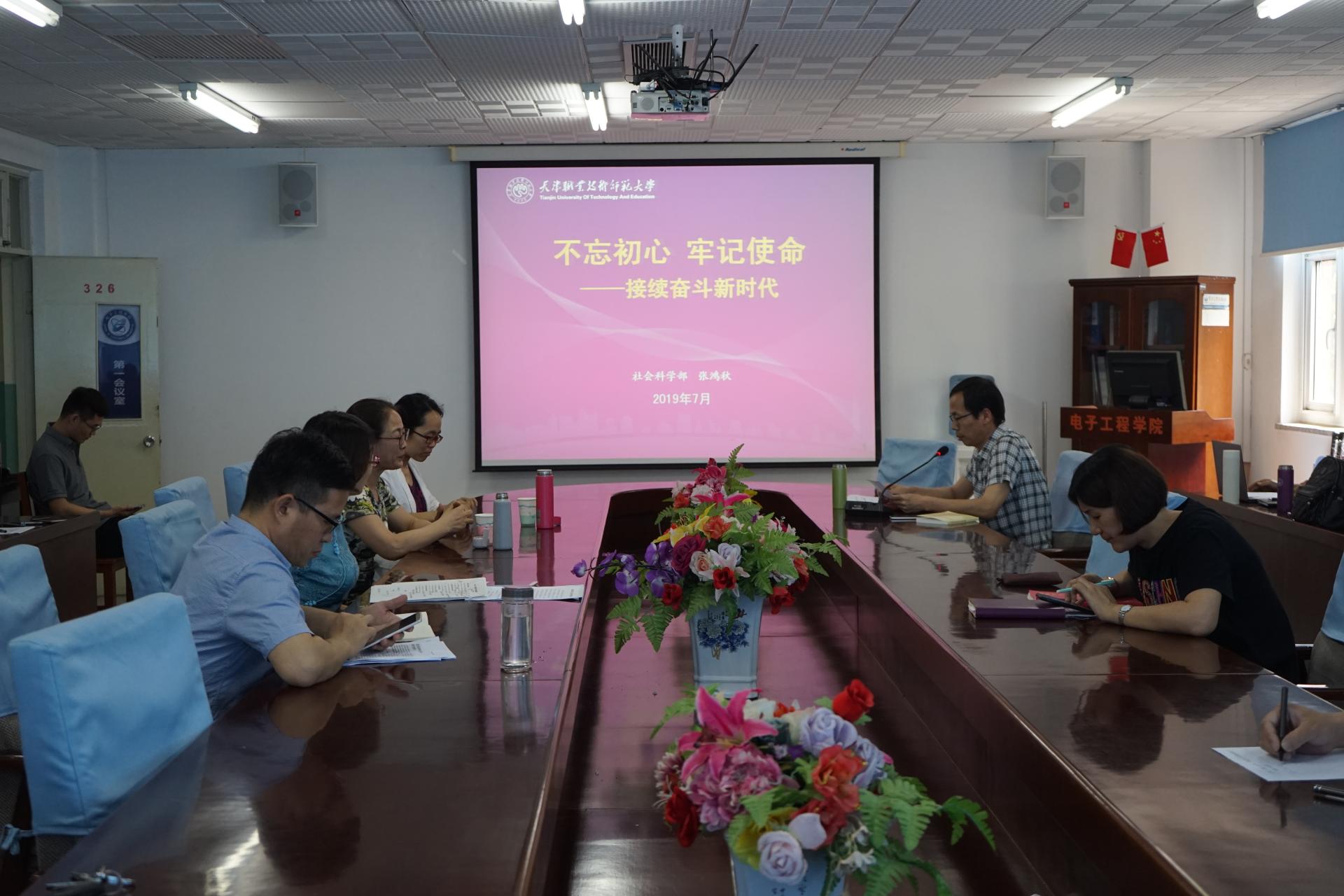 7月2日下午,永利yl23411邀请社会科学部副主任张鸿秋和课程组组长王晓霞为永利yl23411全体教师开展主题党课教育,坚定教师理想信念,公司领导班子成员以及全体教师参加。